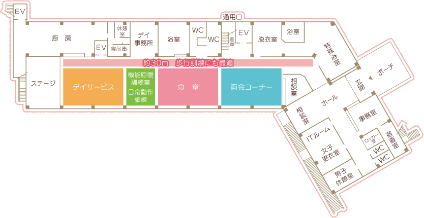 「起きる」「座る」「着替える」「食事をとる」など日常生活に必要な動作やリハビリテーションを通じて自分で出来ることの維持・回復につとめます